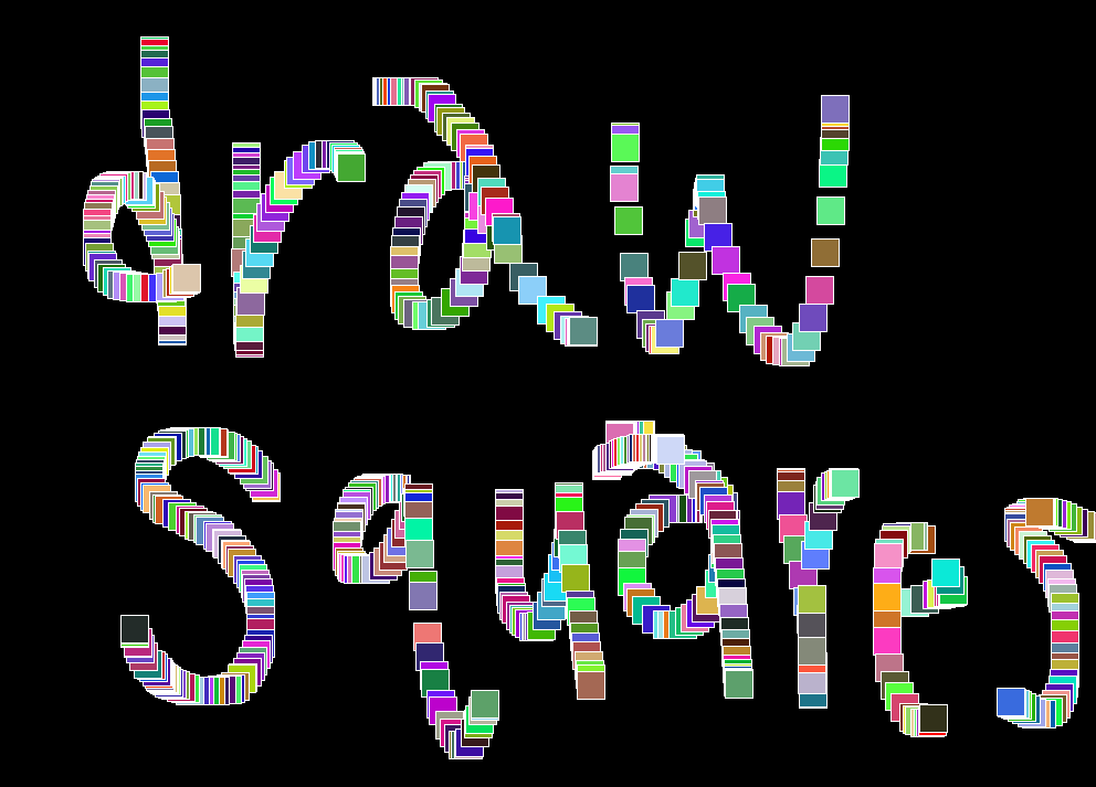 - I started with drawing squares when the mouse is pressed, with a random RGB color for each square and a white stroke.