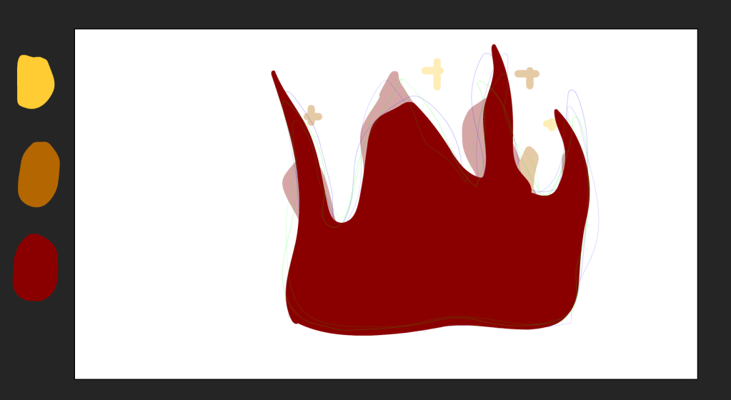 Below are the progress shots, in which I had to do each color animated.
